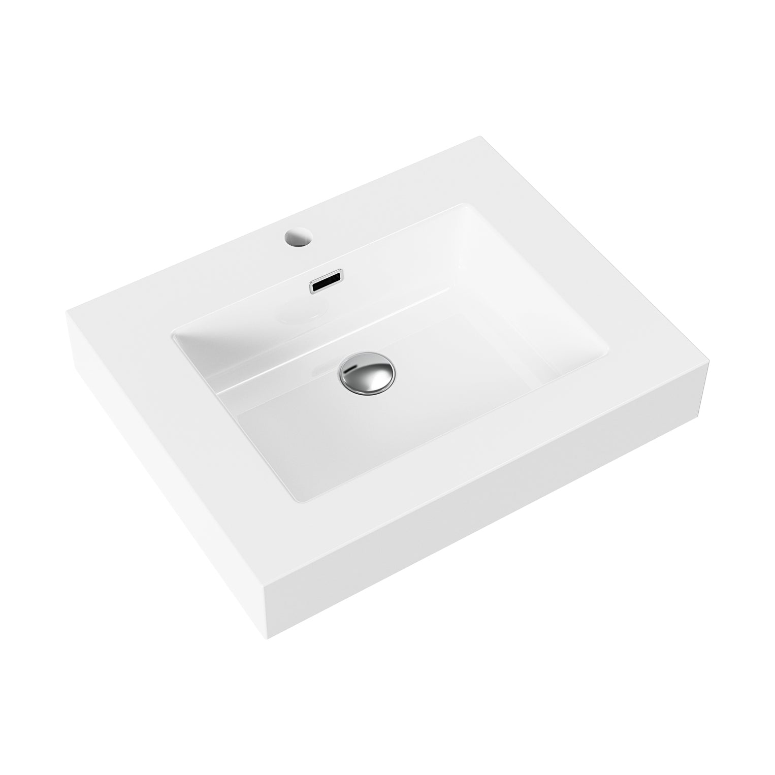 ALONI LAVABO - 1 VASQUE - AVEC TROP-PLEIN - 1 TROU ROBINET - MARBRE COMPOSITE - 60X10X46 CM - BLANC BRILLANT